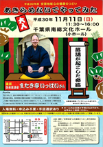 11月11日(日)11:30から南総文化ホールで 「安房地域心の健康のつどい」が開かれます。 心の健康づくりや精神障がいに対する知識を高める活動の一環です。 展示販売やスタンプラリー、お楽しみ抽選会などなど。 14:00からのまたき亭いっぱいさんの講演「落語が起こした奇跡」が 楽しそうです。入場無料です。
